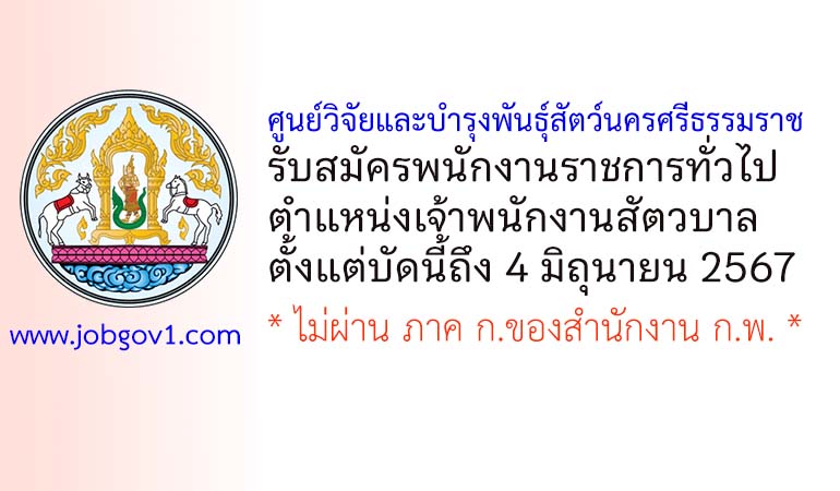 ศูนย์วิจัยและบำรุงพันธุ์สัตว์นครศรีธรรมราช รับสมัครพนักงานราชการทั่วไป ตำแหน่งเจ้าพนักงานสัตวบาล ตั้งแต่บัดนี้ถึง 4 มิถุนายน 2567