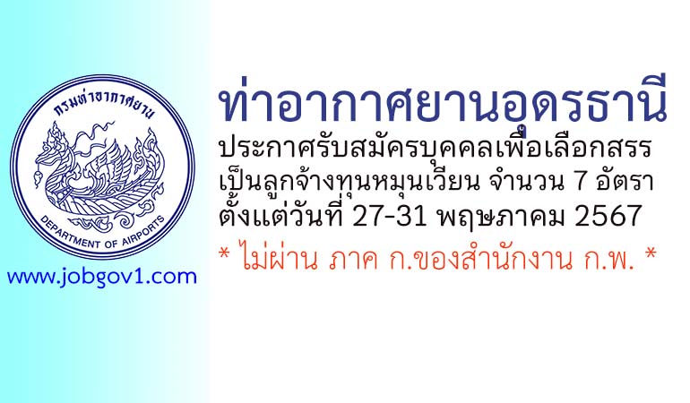 ท่าอากาศยานอุดรธานี รับสมัครบุคคลเพื่อเลือกสรรเป็นลูกจ้างทุนหมุนเวียน 7 อัตรา ตั้งแต่วันที่ 27-31 พฤษภาคม 2567