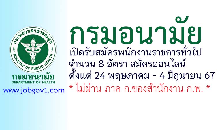กรมอนามัย รับสมัครบุคคลเพื่อเลือกสรรเป็นพนักงานราชการทั่วไป 8 อัตรา ตั้งแต่ 24 พฤษภาคม – 4 มิถุนายน 2567