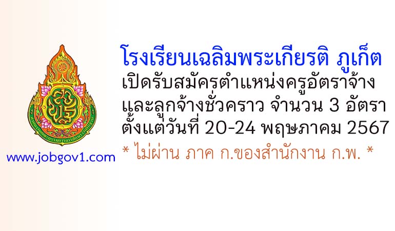 โรงเรียนเฉลิมพระเกียรติ ภูเก็ต รับสมัครครูอัตราจ้าง และลูกจ้างชั่วคราว 3 อัตรา ตั้งแต่วันที่ 20-24 พฤษภาคม 2567