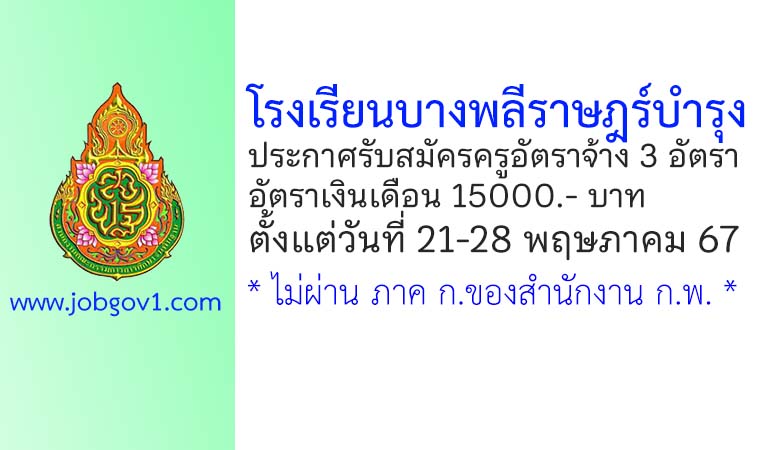 โรงเรียนบางพลีราษฎร์บำรุง รับสมัครครูอัตราจ้าง 3 อัตรา ตั้งแต่วันที่ 21-28 พฤษภาคม 2567