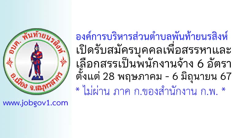 องค์การบริหารส่วนตำบลพันท้ายนรสิงห์ รับสมัครบุคคลเพื่อสรรหาและเลือกสรรเป็นพนักงานจ้าง 6 อัตรา ตั้งแต่ 28 พฤษภาคม – 6 มิถุนายน 2567