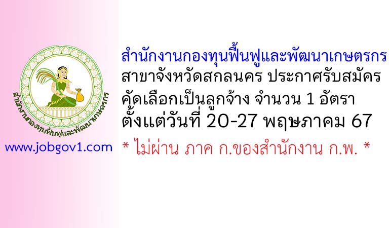 ประกาศสำนักงานกองทุนฟื้นฟูและพัฒนาเกษตรกร สาขาจังหวัดสกลนคร เรื่อง รับสมัครสอบคัดเลือกบุคคลทั่วไป เพื่อเป็นลูกจ้างโครงการเร่งรัดการแก้ไขปัญหาหนี้ของเกษตรกร ตามพระราชบัญญัติกองทุนฟื้นฟูและพัฒนาเกษตรกร (ฉบับที่ 3) พ.ศ. 2563
