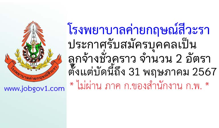 โรงพยาบาลค่ายกฤษณ์สีวะรา รับสมัครลูกจ้างชั่วคราว 2 อัตรา ตั้งแต่บัดนี้ถึง 31 พฤษภาคม 2567