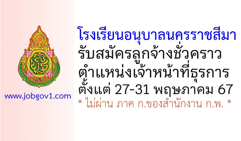 โรงเรียนอนุบาลนครราชสีมา รับสมัครลูกจ้างชั่วคราว ตำแหน่งเจ้าหน้าที่ธุรการ ตั้งแต่วันที่ 27-31 พฤษภาคม 2567
