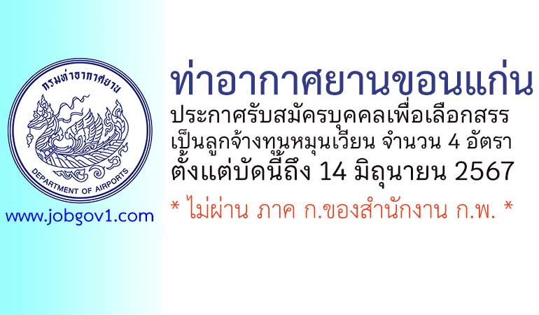 ท่าอากาศยานขอนแก่น รับสมัครบุคคลเพื่อเลือกสรรเป็นลูกจ้างทุนหมุนเวียน 4 อัตรา ตั้งแต่บัดนี้ถึง 14 มิถุนายน 2567