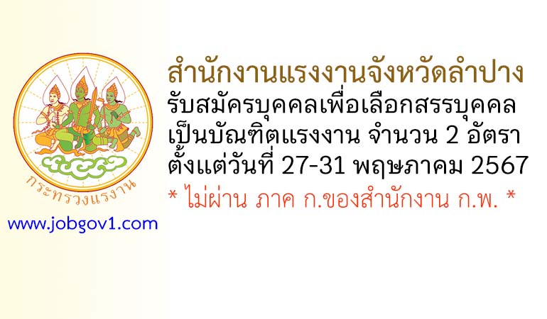 สำนักงานแรงงานจังหวัดลำปาง รับสมัครจ้างเหมาบริการรายบุคคลเป็นบัณฑิตแรงงาน 2 อัตรา ตั้งแต่วันที่ 27-31 พฤษภาคม 2567