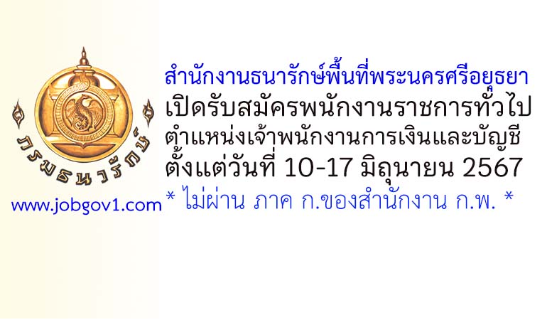 สำนักงานธนารักษ์พื้นที่พระนครศรีอยุธยา รับสมัครพนักงานราชการทั่วไป ตำแหน่งเจ้าพนักงานการเงินและบัญชี ตั้งแต่วันที่ 10-17 มิถุนายน 2567