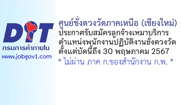 ศูนย์ชั่งตวงวัดภาคเหนือ (เชียงใหม่) รับสมัครลูกจ้างเหมาบริการ ตำแหน่งพนักงานปฏิบัติงานชั่งตวงวัด ตั้งแต่บัดนี้ถึง 30 พฤษภาคม 2567
