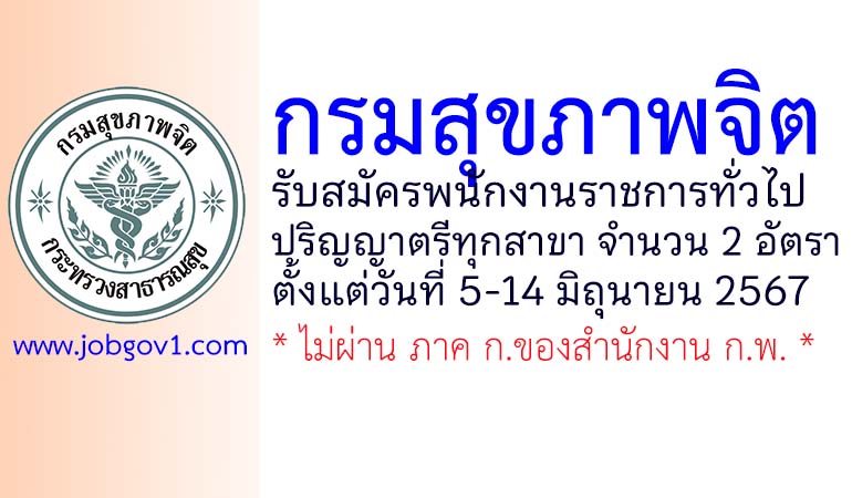 กรมสุขภาพจิต รับสมัครบุคคลเพื่อเลือกสรรเป็นพนักงานราชการทั่วไป 2 อัตรา ตั้งแต่วันที่ 5-14 มิถุนายน 2567