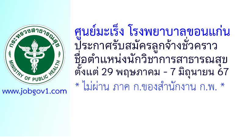 ศูนย์มะเร็ง โรงพยาบาลขอนแก่น รับสมัครลูกจ้างชั่วคราว ตำแหน่งนักวิชาการสาธารณสุข ตั้งแต่ 29 พฤษภาคม – 7 มิถุนายน 2567