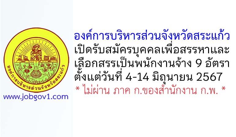 องค์การบริหารส่วนจังหวัดสระแก้ว รับสมัครบุคคลเพื่อสรรหาและเลือกสรรเป็นพนักงานจ้าง 9 อัตรา ตั้งแต่วันที่ 4-14 มิถุนายน 2567