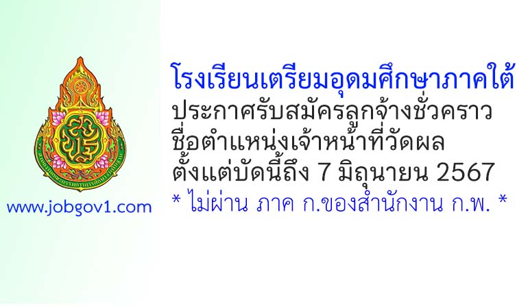 โรงเรียนเตรียมอุดมศึกษาภาคใต้ รับสมัครลูกจ้างชั่วคราว ตำแหน่งเจ้าหน้าที่วัดผล ตั้งแต่บัดนี้ถึง 7 มิถุนายน 2567