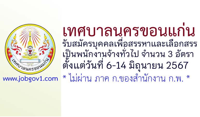 เทศบาลนครขอนแก่น รับสมัครบุคคลเพื่อสรรหาและเลือกสรรเป็นพนักงานจ้างทั่วไป 3 อัตรา ตั้งแต่วันที่ 6-14 มิถุนายน 2567