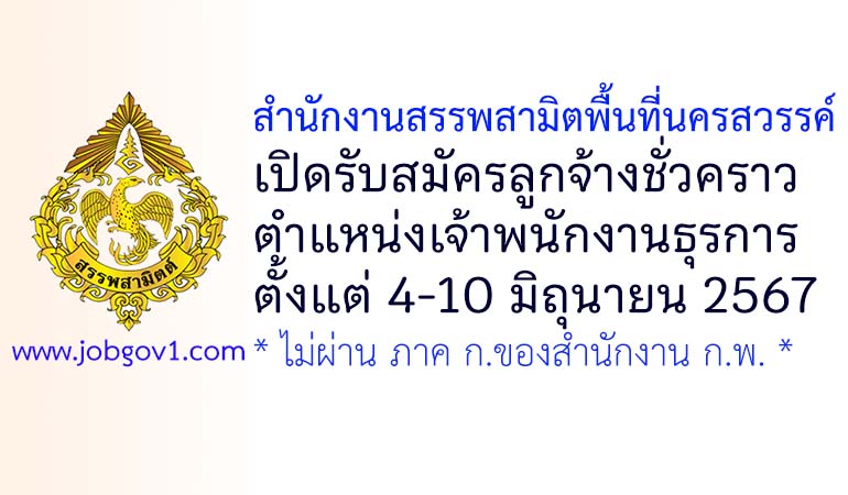 สำนักงานสรรพสามิตพื้นที่นครสวรรค์ รับสมัครลูกจ้างชั่วคราว ตำแหน่งเจ้าพนักงานธุรการ ตั้งแต่วันที่ 4-10 มิถุนายน 2567