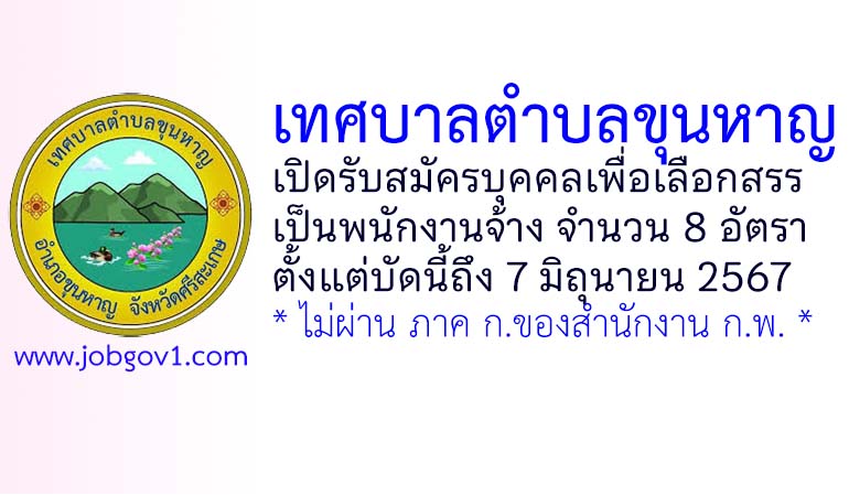 เทศบาลตำบลขุนหาญ รับสมัครบุคคลเพื่อเลือกสรรเป็นพนักงานจ้าง 8 อัตรา ตั้งแต่บัดนี้ถึง 7 มิถุนายน 2567
