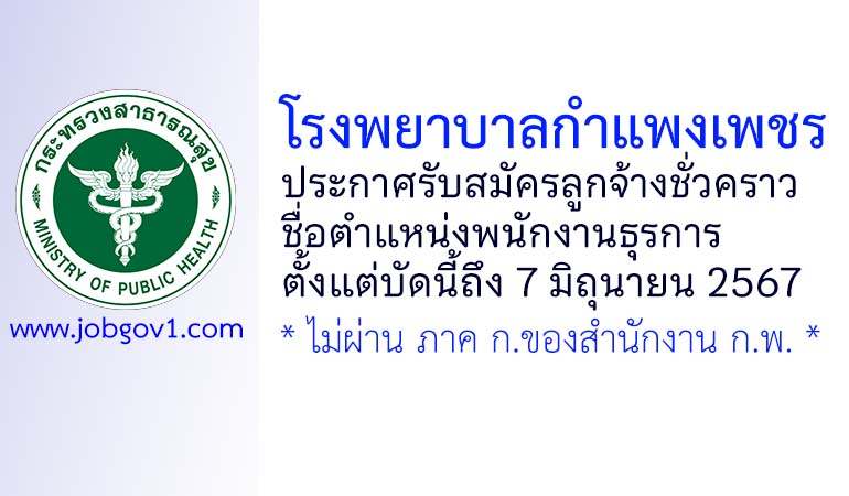 โรงพยาบาลกำแพงเพชร รับสมัครลูกจ้างชั่วคราว ตำแหน่งพนักงานธุรการ ตั้งแต่บัดนี้ถึง 7 มิถุนายน 2567