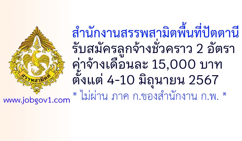 สำนักงานสรรพสามิตพื้นที่ปัตตานี รับสมัครสอบคัดเลือกเป็นลูกจ้างชั่วคราว 2 อัตรา ตั้งแต่วันที่ 4-10 มิถุนายน 2567