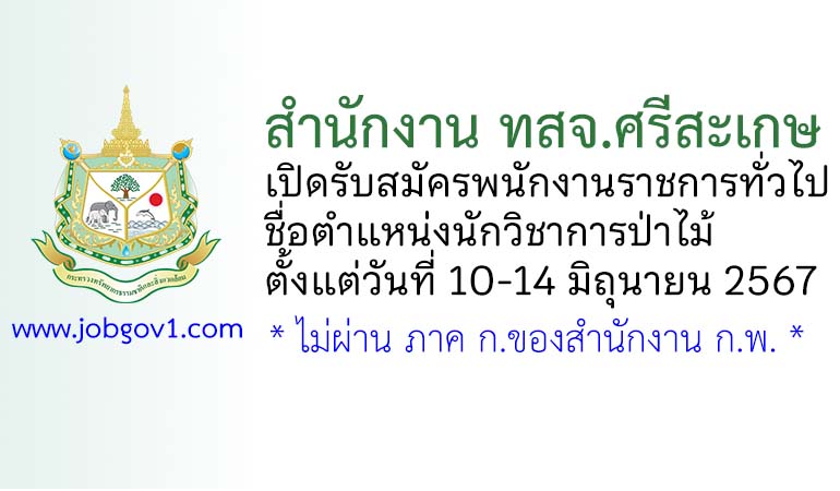 สำนักงาน ทสจ.ศรีสะเกษ รับสมัครพนักงานราชการทั่วไป ตำแหน่งนักวิชาการป่าไม้ ตั้งแต่วันที่ 10-14 มิถุนายน 2567