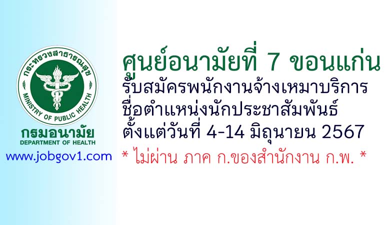 ศูนย์อนามัยที่ 7 ขอนแก่น รับสมัครพนักงานจ้างเหมาบริการ ตำแหน่งนักประชาสัมพันธ์ ตั้งแต่วันที่ 4-14 มิถุนายน 2567