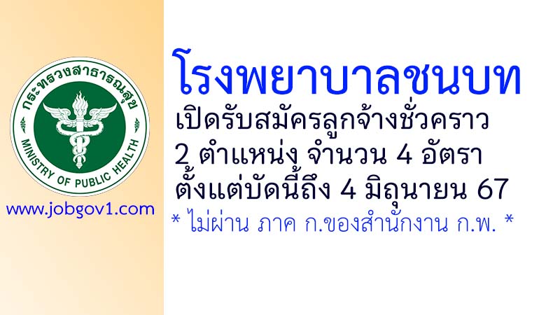 โรงพยาบาลชนบท รับสมัครบุคคลเพื่อสรรหาเป็นลูกจ้างชั่วคราว 4 อัตรา ตั้งแต่บัดนี้ถึง 4 มิถุนายน 2567