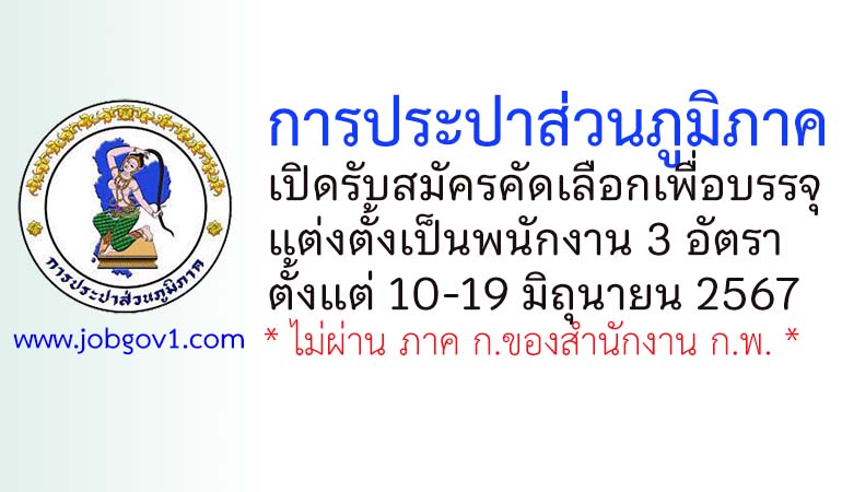 การประปาส่วนภูมิภาค รับสมัครคัดเลือกเพื่อบรรจุแต่งตั้งเป็นพนักงาน 3 อัตรา ตั้งแต่วันที่ 10-19 มิถุนายน 2567