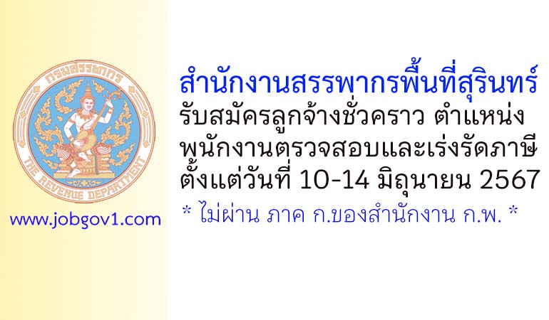 สำนักงานสรรพากรพื้นที่สุรินทร์ รับสมัครลูกจ้างชั่วคราว ตำแหน่งพนักงานตรวจสอบและเร่งรัดภาษี ตั้งแต่วันที่ 10-14 มิถุนายน 2567