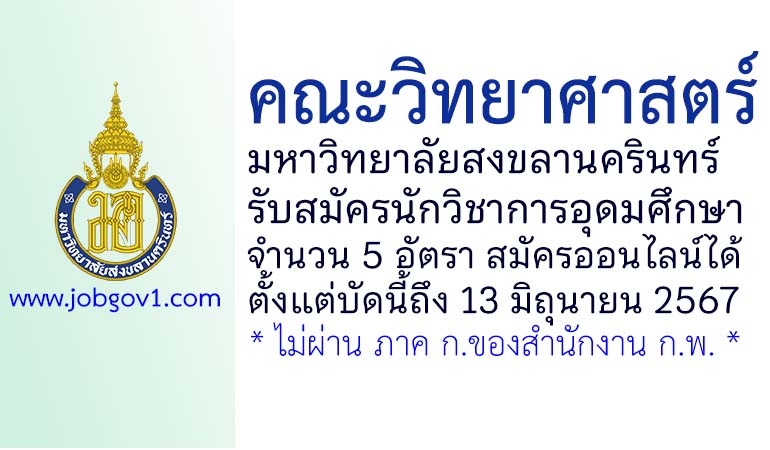 คณะวิทยาศาสตร์ มหาวิทยาลัยสงขลานครินทร์ รับสมัครนักวิชาการอุดมศึกษา 5 อัตรา ตั้งแต่บัดนี้ถึง 13 มิถุนายน 2567