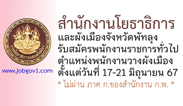 สำนักงานโยธาธิการและผังเมืองจังหวัดพัทลุง รับสมัครพนักงานราชการทั่วไป ตำแหน่งพนักงานวางผังเมือง ตั้งแต่วันที่ 17-21 มิถุนายน 2567