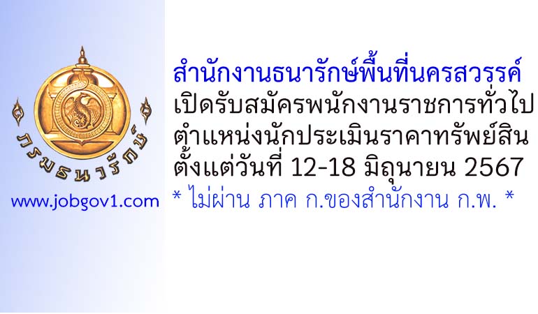 สำนักงานธนารักษ์พื้นที่นครสวรรค์ รับสมัครพนักงานราชการทั่วไป ตำแหน่งนักประเมินราคาทรัพย์สิน ตั้งแต่วันที่ 12-18 มิถุนายน 2567