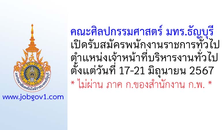 คณะศิลปกรรมศาสตร์ มทร.ธัญบุรี รับสมัครพนักงานราชการทั่วไป ตำแหน่งเจ้าหน้าที่บริหารงานทั่วไป ตั้งแต่วันที่ 17-21 มิถุนายน 2567
