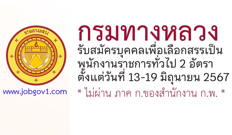 กรมทางหลวง รับสมัครบุคคลเพื่อเลือกสรรเป็นพนักงานราชการทั่วไป 2 อัตรา ตั้งแต่วันที่ 13-19 มิถุนายน 2567