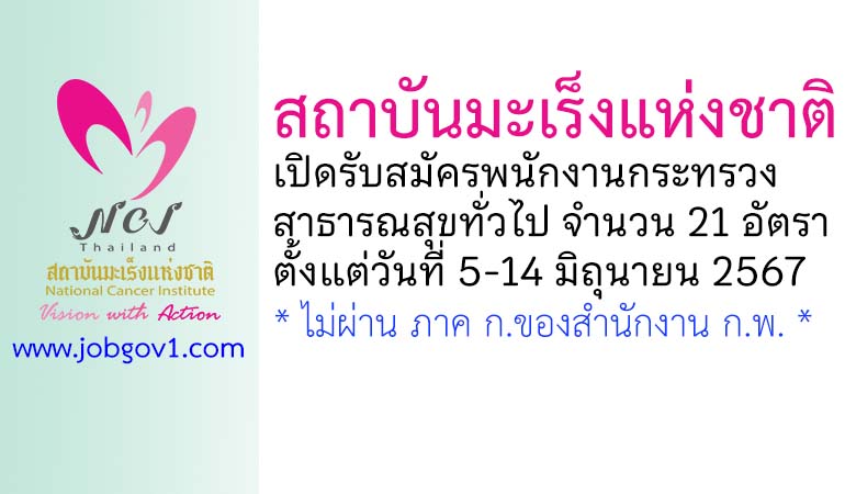 สถาบันมะเร็งแห่งชาติ รับสมัครพนักงานกระทรวงสาธารณสุขทั่วไป 21 อัตรา ตั้งแต่วันที่ 5-14 มิถุนายน 2567