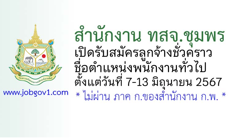 สำนักงาน ทสจ.ชุมพร รับสมัครลูกจ้างชั่วคราว ตำแหน่งพนักงานทั่วไป ตั้งแต่วันที่ 7-13 มิถุนายน 2567