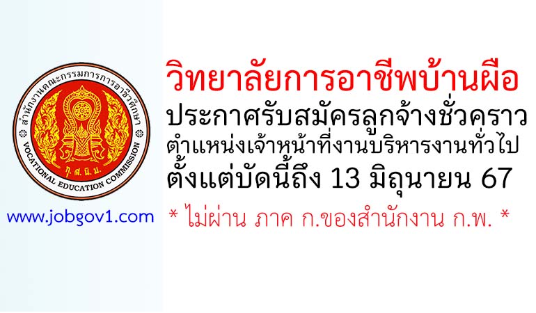 วิทยาลัยการอาชีพบ้านผือ รับสมัครลูกจ้างชั่วคราว ตำแหน่งเจ้าหน้าที่งานบริหารงานทั่วไป ตั้งแต่วันที่ 7-13 มิถุนายน 2567