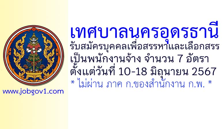 เทศบาลนครอุดรธานี รับสมัครบุคคลเพื่อสรรหาและเลือกสรรเป็นพนักงานจ้าง 7 อัตรา ตั้งแต่วันที่ 10-18 มิถุนายน 2567