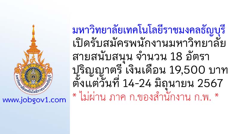 ประกาศมหาวิทยาลัยเทคโนโลยีราชมงคลธัญบุรี เรื่อง รับสมัครบุคคลเพื่อสอบแข่งขันเพื่อบรรจุและแต่งตั้งเป็นพนักงานมหาวิทยาลัย สายสนับสนุน ครั้งที่ 1/2567