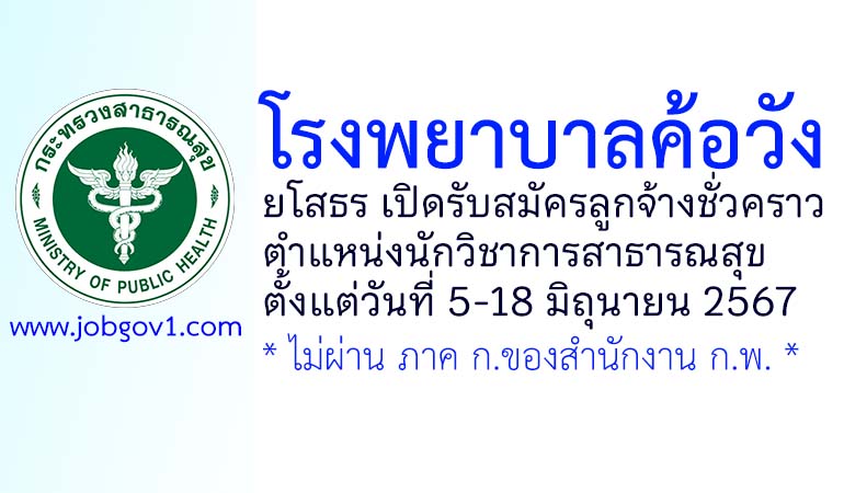 โรงพยาบาลค้อวัง รับสมัครลูกจ้างชั่วคราว ตำแหน่งนักวิชาการสาธารณสุข ตั้งแต่วันที่ 5-18 มิถุนายน 2567