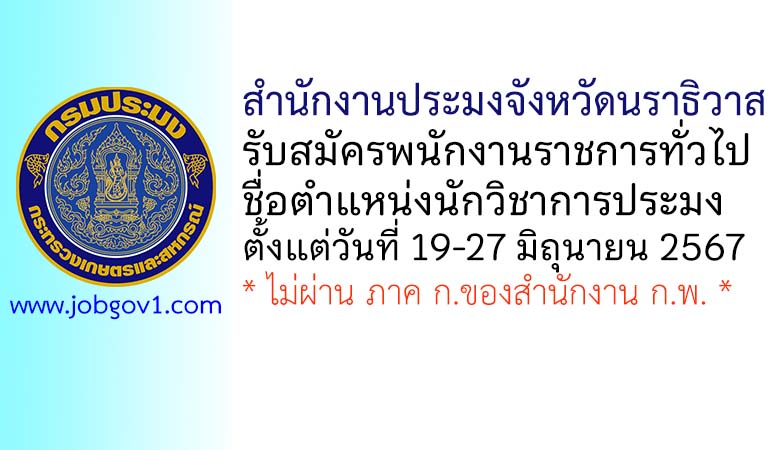 สำนักงานประมงจังหวัดนราธิวาส รับสมัครพนักงานราชการทั่วไป ตำแหน่งนักวิชาการประมง ตั้งแต่วันที่ 19-27 มิถุนายน 2567
