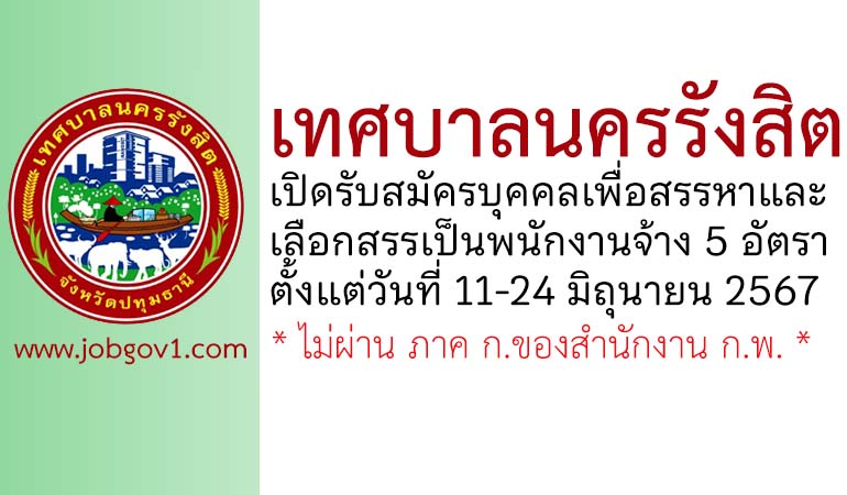 เทศบาลนครรังสิต รับสมัครบุคคลเพื่อสรรหาและเลือกสรรเป็นพนักงานจ้าง 5 อัตรา ตั้งแต่วันที่ 11-24 มิถุนายน 2567