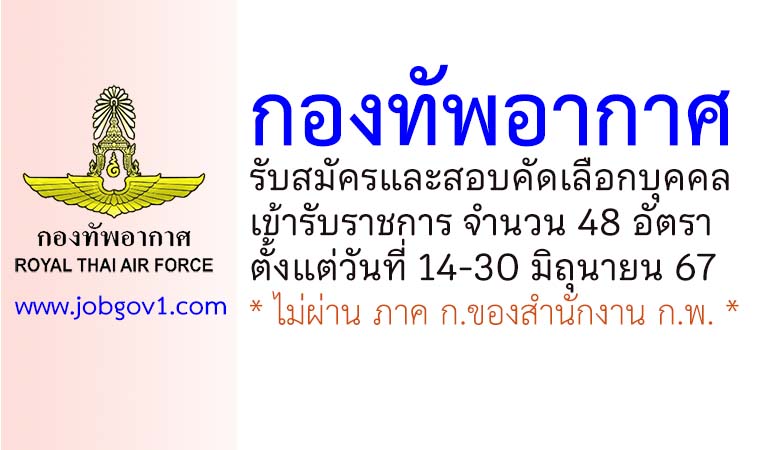กองทัพอากาศ รับสมัครและสอบคัดเลือกบุคคลเข้ารับราชการ 48 อัตรา ตั้งแต่วันที่ 14-30 มิถุนายน 2567
