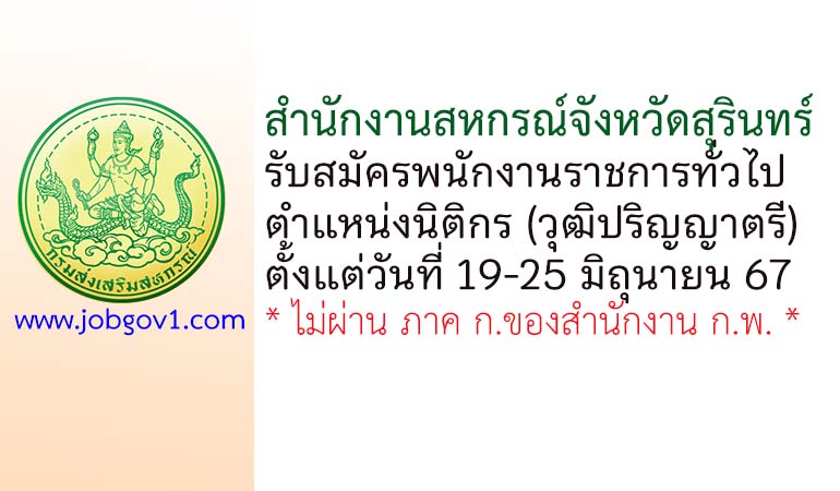 สำนักงานสหกรณ์จังหวัดสุรินทร์ รับสมัครพนักงานราชการทั่วไป ตำแหน่งนิติกร ตั้งแต่วันที่ 19-25 มิถุนายน 2567