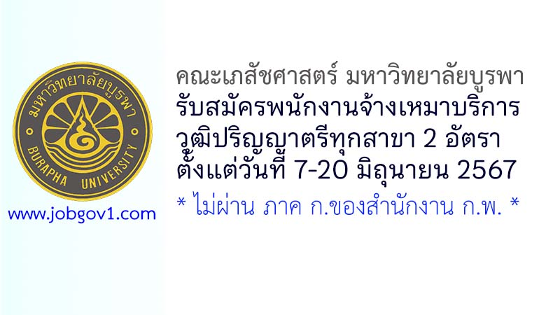 คณะเภสัชศาสตร์ มหาวิทยาลัยบูรพา รับสมัครพนักงานจ้างเหมาบริการ 2 อัตรา ตั้งแต่วันที่ 7-20 มิถุนายน 2567