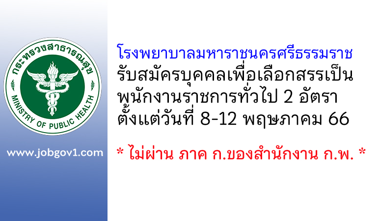 โรงพยาบาลมหาราชนครศรีธรรมราช รับสมัครบุคคลเพื่อเลือกสรรเป็นพนักงานราชการทั่วไป 2 อัตรา ตั้งแต่วันที่ 8-12 พฤษภาคม 2566