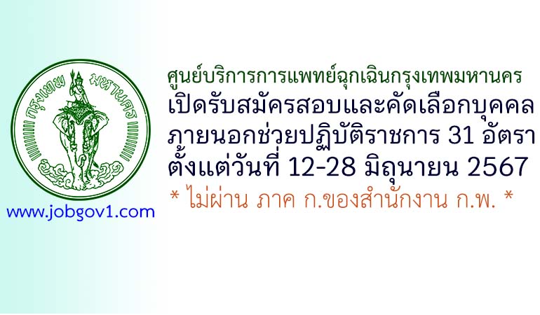 ศูนย์บริการการแพทย์ฉุกเฉินกรุงเทพมหานคร รับสมัครสอบและคัดเลือกบุคคลภายนอกช่วยปฏิบัติราชการ 31 อัตรา ตั้งแต่วันที่ 12-28 มิถุนายน 2567