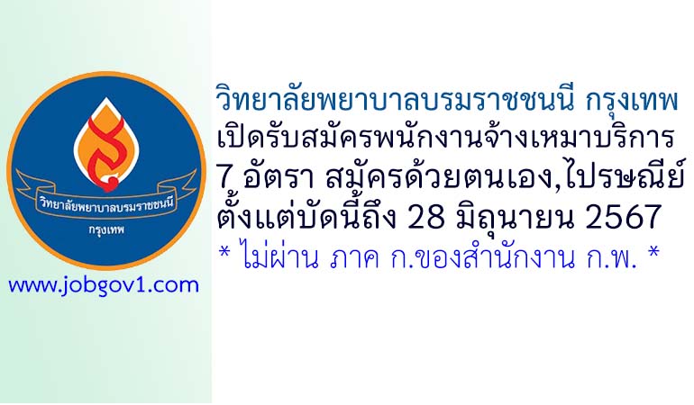 วิทยาลัยพยาบาลบรมราชชนนี กรุงเทพ รับสมัครพนักงานจ้างเหมาบริการ 7 อัตรา ตั้งแต่บัดนี้ถึง 28 มิถุนายน 2567
