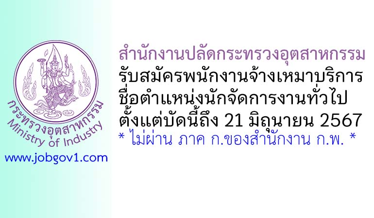 สำนักงานปลัดกระทรวงอุตสาหกรรม รับสมัครพนักงานจ้างเหมาบริการ ตำแหน่งนักจัดการงานทั่วไป ตั้งแต่บัดนี้ถึง 21 มิถุนายน 2567