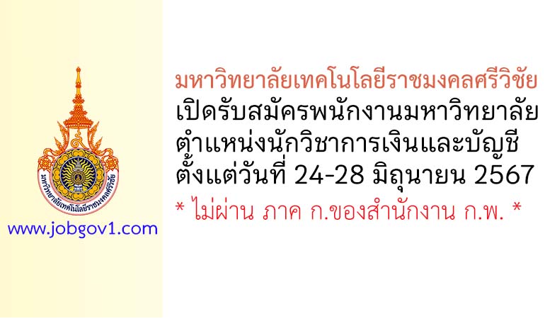 มหาวิทยาลัยเทคโนโลยีราชมงคลศรีวิชัย รับสมัครพนักงานมหาวิทยาลัย ตำแหน่งนักวิชาการเงินและบัญชี ตั้งแต่วันที่ 24-28 มิถุนายน 2567