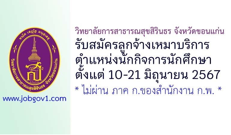 วิทยาลัยการสาธารณสุขสิรินธร จังหวัดขอนแก่น รับสมัครลูกจ้างเหมาบริการ ตำแหน่งนักกิจการนักศึกษา ตั้งแต่วันที่ 10-21 มิถุนายน 2567