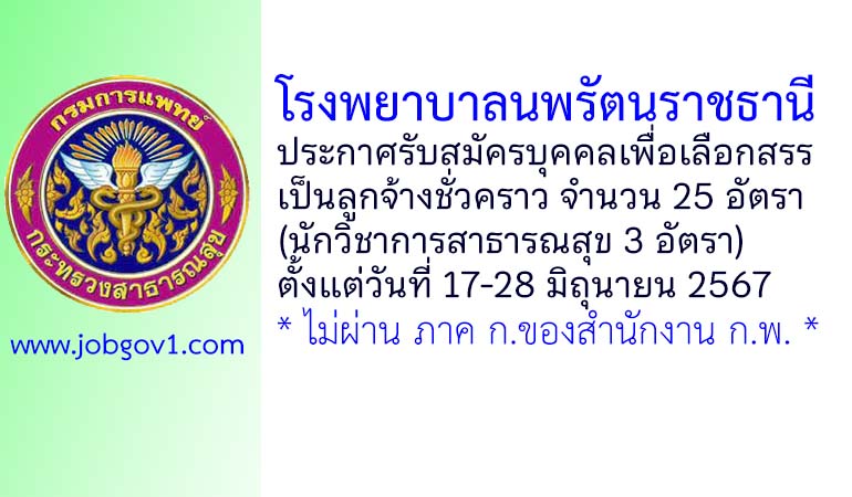โรงพยาบาลนพรัตนราชธานี รับสมัครบุคคลเพื่อเลือกสรรเป็นลูกจ้างชั่วคราว 25 อัตรา ตั้งแต่วันที่ 17-28 มิถุนายน 2567